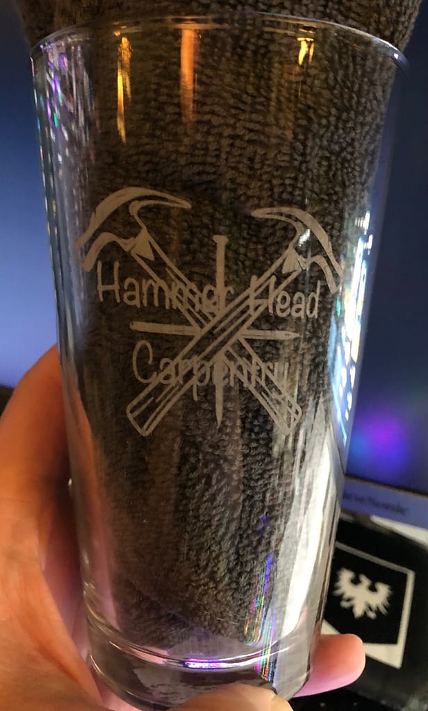 While I have your attention, please remember that I can do custom laser engraving and help you to create the gift, sign, or art piece that is personalized for you or your loved one. If I can engrave Jeff’s logo on the pint glass below, imagine what I can do for you!